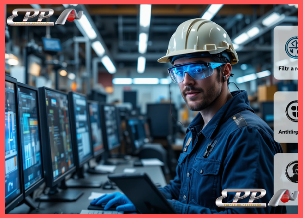 No se trata solo de comodidad al mirar un monitor. En sectores como la gestión de proyectos de construcción en Quito, el control de procesos en plantas industriales de Guayaquil o la operación de maquinaria con pantallas táctiles, la exposición prolongada a luz azul de alta energía puede causar fatiga visual severa, dolores de cabeza y alteraciones del sueño. Esto impacta directamente en la productividad y la seguridad. Un operador con fatiga visual en una grúa o una planta química comete más errores. La luz azul proviene de fuentes artificiales modernas: pantallas LED, iluminación de bajo consumo y equipos de monitoreo. Es crucial diferenciar estos lentes de los de protección solar común; aquí el filtro es específico para un espectro de luz. En EPP-EC tenemos el equipo ideal para tu necesidad – cotiza por WhatsApp al final del artículo.