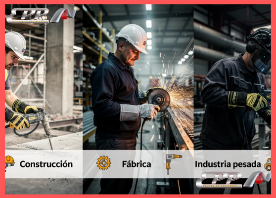| Construcción y Obras Viales | Martillo demoledor, compactador, cortadora de concreto | Alta amortiguación (gel), refuerzos de cuero, puño alto. |