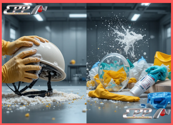 Son conceptos distintos. La limpieza remueve suciedad visible. La desinfección mata microorganismos, crucial en hospitales o manipulación de alimentos. Para la mayoría de obras, una limpieza rigurosa es suficiente. El proceso inicia con la inspección previa para detectar daños. Luego, se retiran partes desmontables (almohadillas del casco, filtros). Se usa la solución correcta con paños o cepillos suaves, enjuagando bien. El secado debe ser al aire en sombra, nunca sobre motores o calderas. Para desinfección, tras la limpieza, se aplica un desinfectante registrado (como diluciones de hipoclorito o amonios cuaternarios) con tiempo de contacto indicado, y luego se enjuaga si es necesario. Siempre sigue el protocolo escrito de la empresa. Un respirador 3M mal enjuagado puede dejar residuos químicos que el usuario inhale. En EPP-EC tenemos el equipo ideal para tu necesidad – cotiza por WhatsApp al final del artículo.