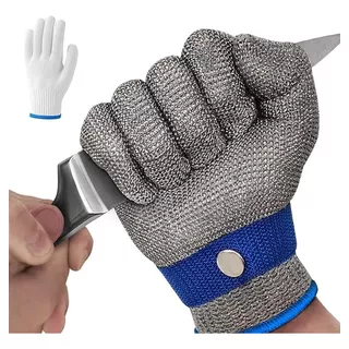 El guante malla de acero (también conocido como guante de malla metálica o guante blindado) es un equipo de protección personal (EPP) fabricado en anillos de acero inoxidable entrelazados, ofreciendo resistencia extrema a cortes de cuchillos, sierras y objetos afilados. Su diseño ambidiestro permite usarlo en ambas manos y el puño de 7,5 cm proporciona ajuste seguro sin resbalar. Es el estándar de seguridad en entornos donde el riesgo de corte es alto.