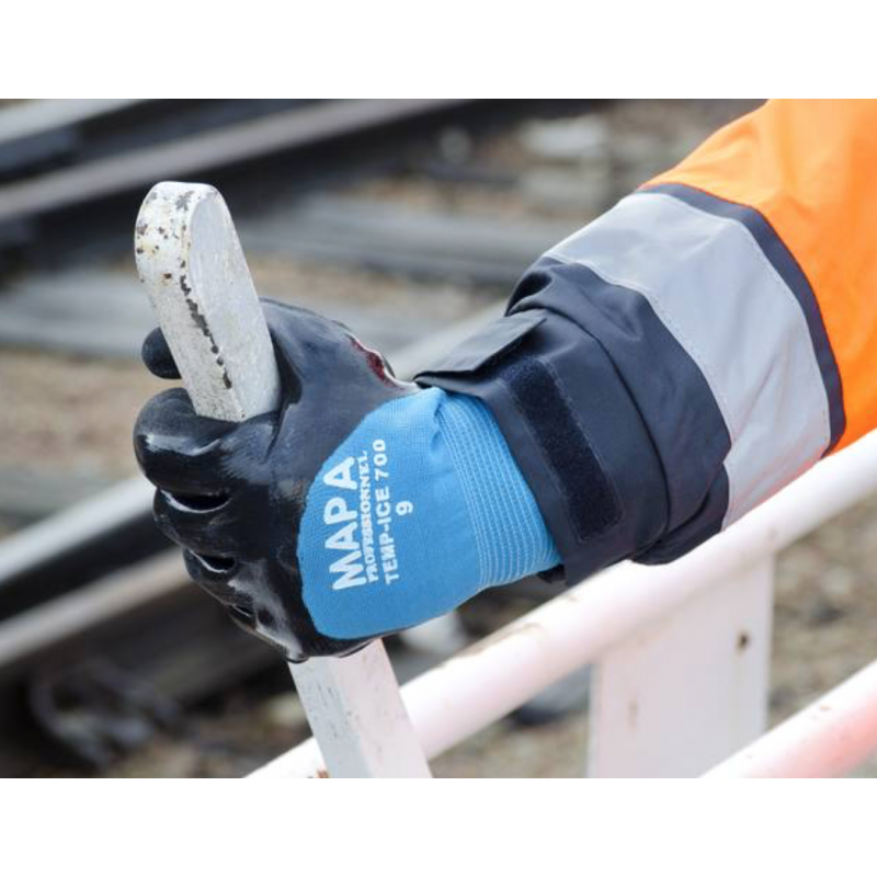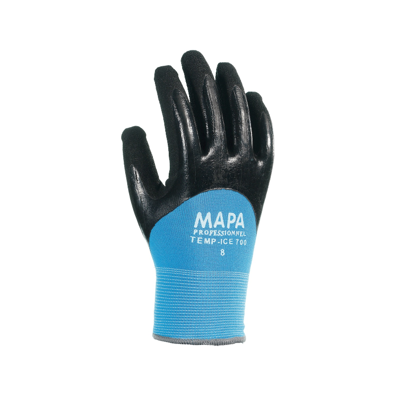 El Guante Térmico MAPA TempIce 700 es un EPI especializado para trabajos en frío y condiciones de humedad, con resistencia certificada hasta -10°C. Su recubrimiento Grip & Proof™ garantiza agarre excelente en superficies húmedas y aceitosas, reduciendo la fatiga muscular y aumentando la productividad. Con durabilidad 5 veces superior al estándar, es lavable hasta 5 veces a 60°C, prolongando su vida útil. Libre de silicona y DMF, protege la piel y evita marcas en superficies delicadas como vidrio o metal. Ideal para cámaras frigoríficas, logística, mantenimiento exterior y manipulación de materiales en entornos húmedos.