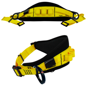 El cinturón de sujeción con faja ancha acolchado en cuero ofrece la máxima seguridad y confort para trabajos en altura. Fabricado con eslinga de correa de polyester de alta ...